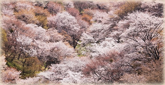 所謂「一目千本」,說的就是放眼過去看到上千棵櫻花。試試用「吉野山」做關鍵字搜尋圖片,你會找到粉嫩可愛又震撼的相片──一整個山頭都是錯落有致的粉紅色。花海,這可是真的以量取勝。