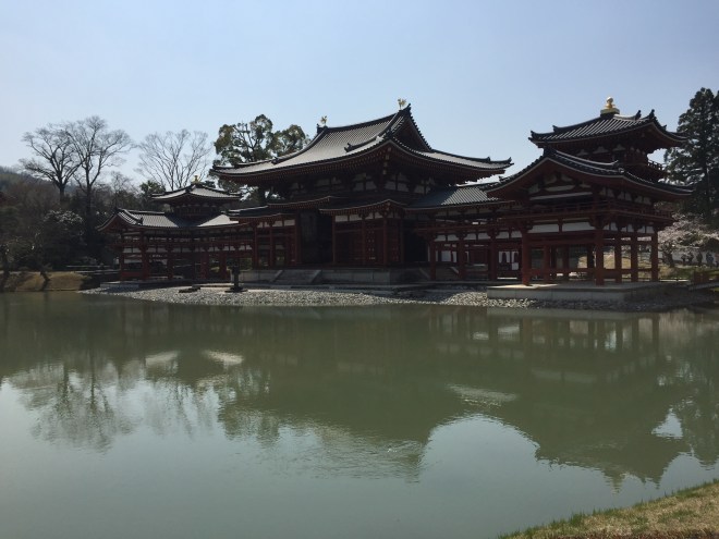 拿出一個日圓十塊──背面那就是鳳凰堂。鳳凰堂座落在平等院裏,連同院內的日式庭園,表達出對西方極樂世界的想像。在塵世建造一個極樂世界,試圖以有形表達無形。進去倒沒甚麼特別感覺,沒有像在聖彼得大教堂時般感受到莫名悸動,只見湖面波平如鏡,隔湖遙觀鳳凰堂只覺得時間彷彿凝住了。極樂世界我不知道是怎樣,但這大概也稱得上是人間淨土吧。