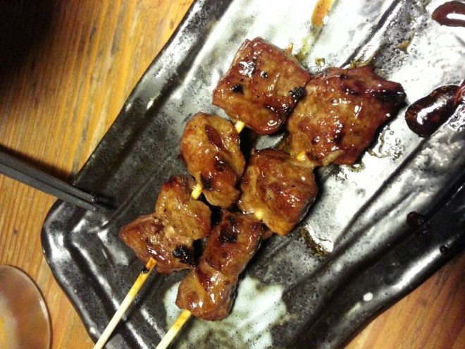 我們算是比較早到了鳥貴族,大概是七時多。我們被安排在樓梯旁邊的角落,可以靜悄悄的觀察其他顧客。旁邊那一桌的日本女生大聲說話,豪邁地喝著啤酒和吸煙。吧台的西裝人靜靜喝著酒。三兩個日本男女歡快地說著話走過。你以為日本人總是有禮而安靜嗎?民族性只是整體印象,但人們的面貌總是更為多面。下次到日本我一定會再去鳥貴族或其他的居酒屋。