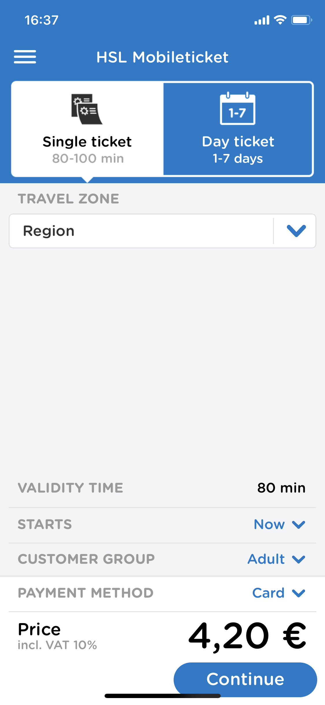 日票的話,從購票機買抑或從HSL Mobiililippu都是一樣價錢,單程票就有差了。比方說,區域票原價是5歐元,用手機買就成了4,20歐元;又以赫爾辛基市內票為例,原價2,90歐元,手機程式的折扣下就減成2,20歐元。這個折扣說多不多,明顯屬於鼓勵性質,是令人們逐漸轉向電子車票的措施。反正我們在赫爾辛基買了日票上下電車、出入地鐵都不用拍卡,就算有實體的卡片也只是在查票時才派得上用處。將車票放在手機內,對於我這種曾經在倫敦掉失Oyster Card的遊客來說,確實是很便利的做法。相信跟我想法相同的人不少。推出時HSL Mobiililippu獲頒2016年最佳手機服務;截止2016年年底就已經有25萬人下載,該年一共賣出超過1百萬張手機車票。