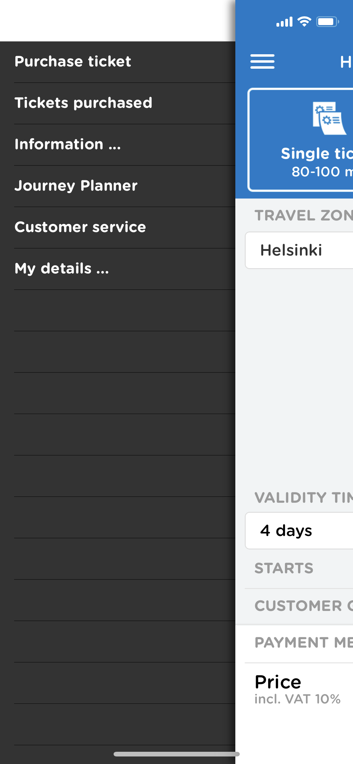 購票的畫面:這裡顯示的是赫爾辛基市內票