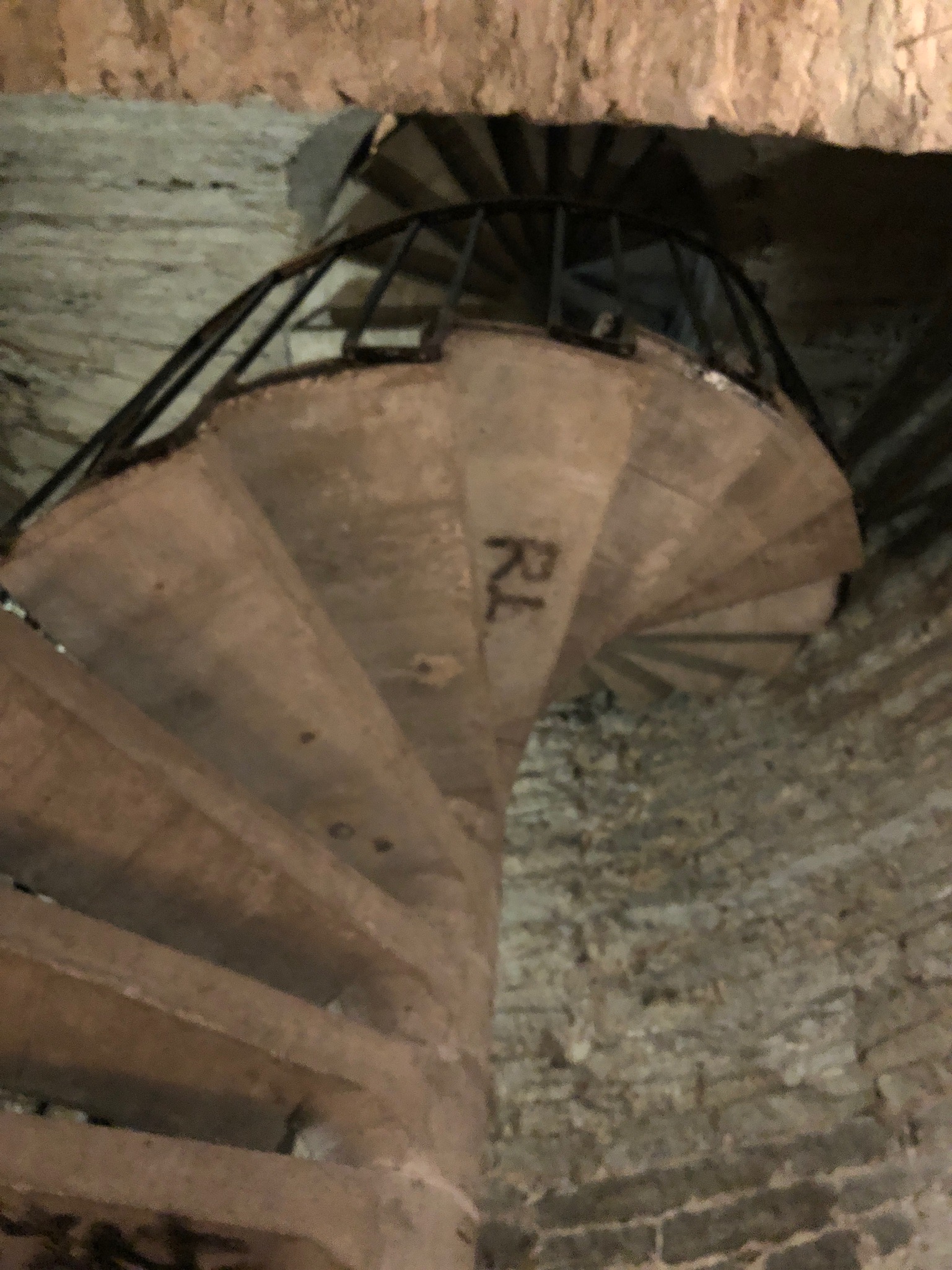 我們從旁邊的螺旋石級樓梯走上去。鐵欄杆和扶手有點歷史,但因為天氣寒冷,我還是照著戴著毛冷手套摸上去,感覺有點髒。還好中間有分層,可以在小石室喘一下氣,否則一直往上走肯定會頭暈眼花。
