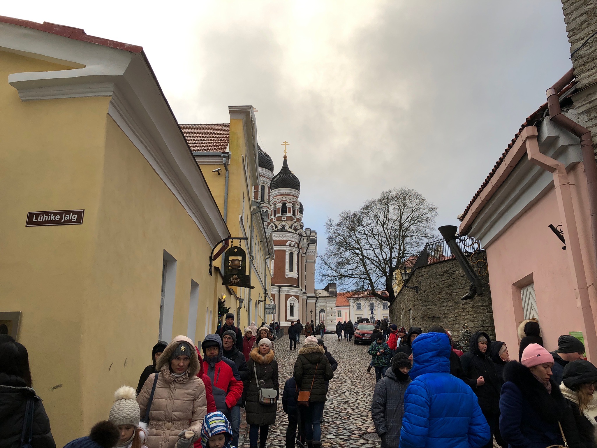 長腿街起初一段路的旁邊是城牆,後面各色各式的小房子又再出現。隨著遊人愈來愈多,在與短腿街相交的路口,我們望到山上其中一個特色:亞歷山大·涅夫斯基主教座堂Alexander Nevsky Cathedral。
