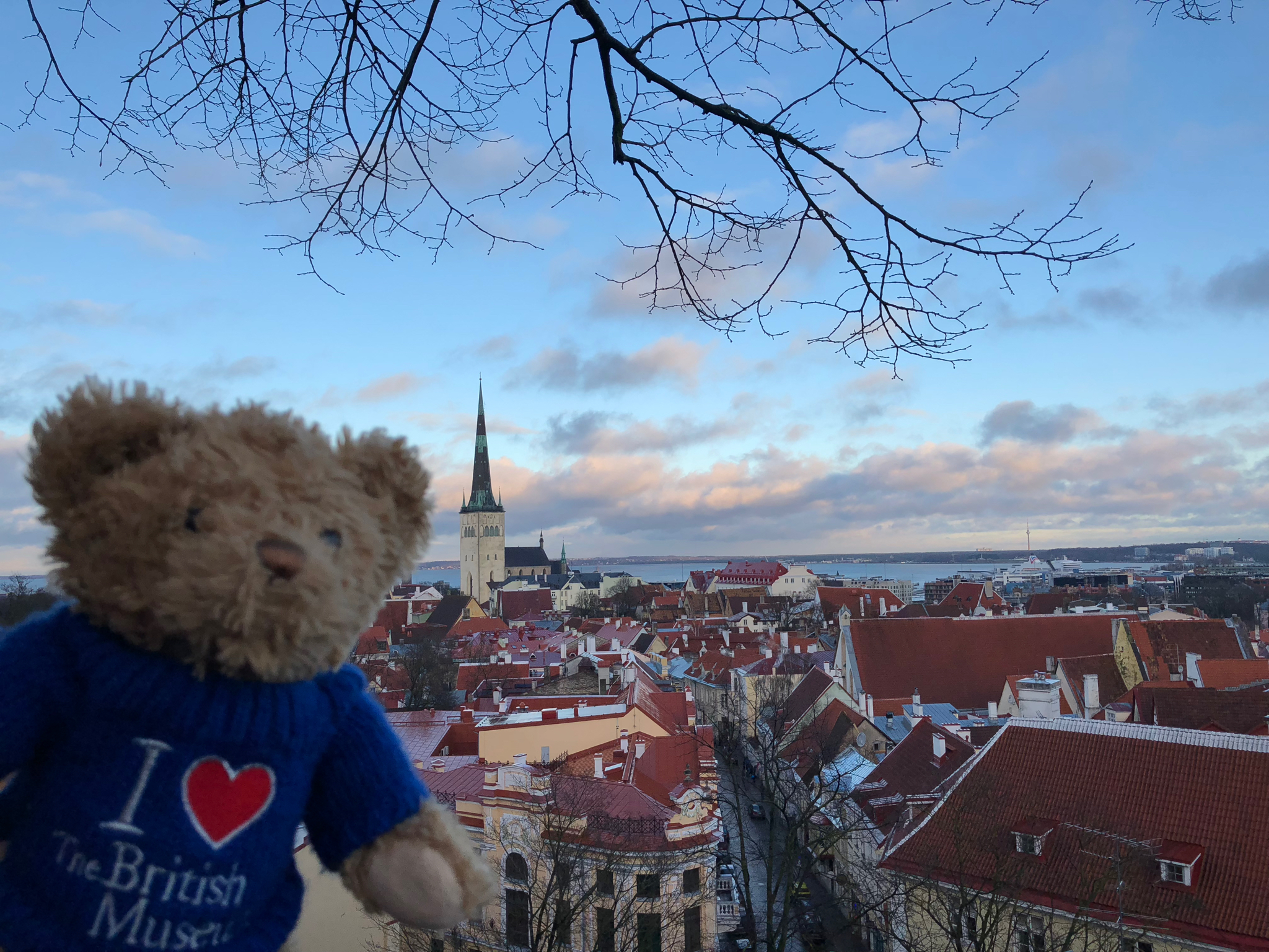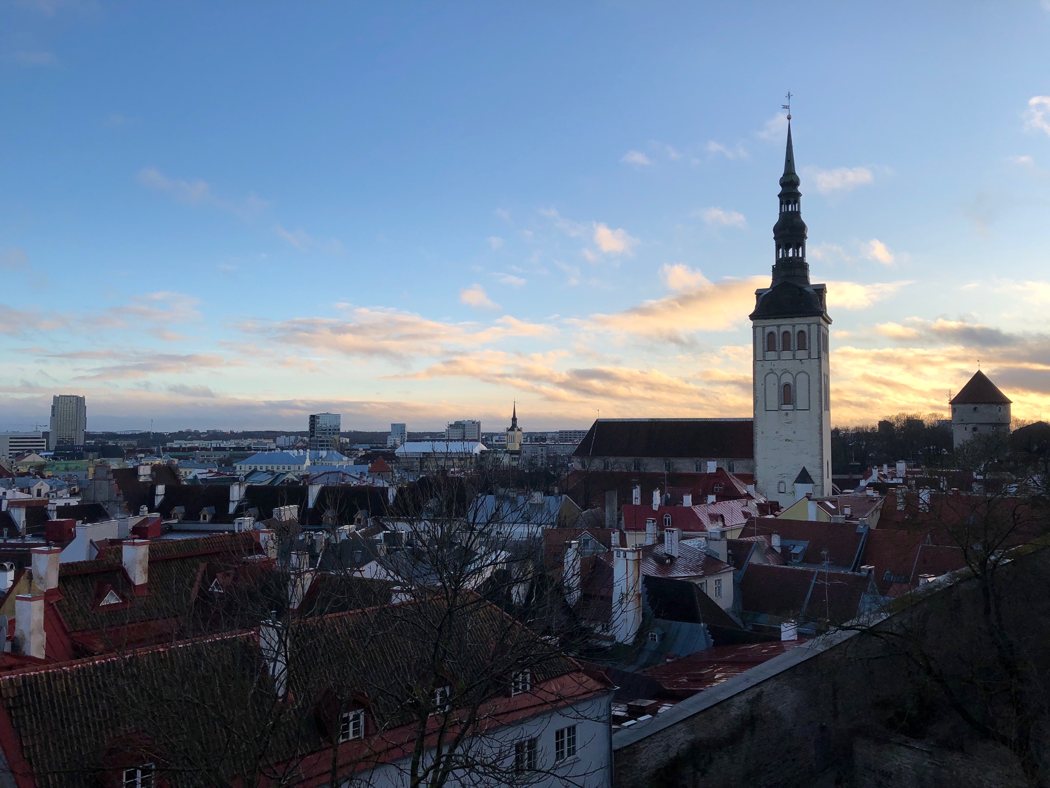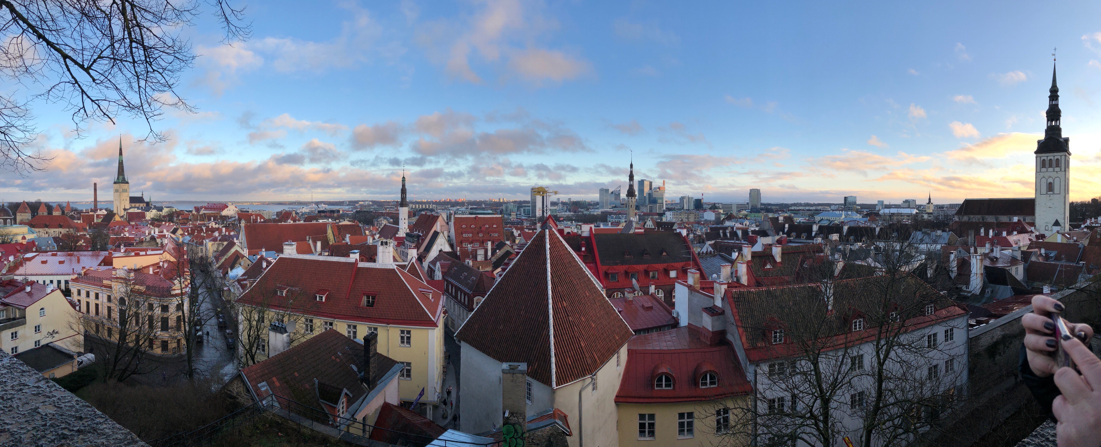 一覽無遺的景觀,一片錯落有致的紅色屋頂,Oleviste Kirik的尖頂,遠處藍色的大海,還有另一邊新城區的玻璃建築。基本上塔林的特色都在這裡可以看到,只是要等一會才可以輪到自己站在觀景台的最外面,而且也不好意思霸佔位置太久。果然是塔林舊城區中必到的一處。