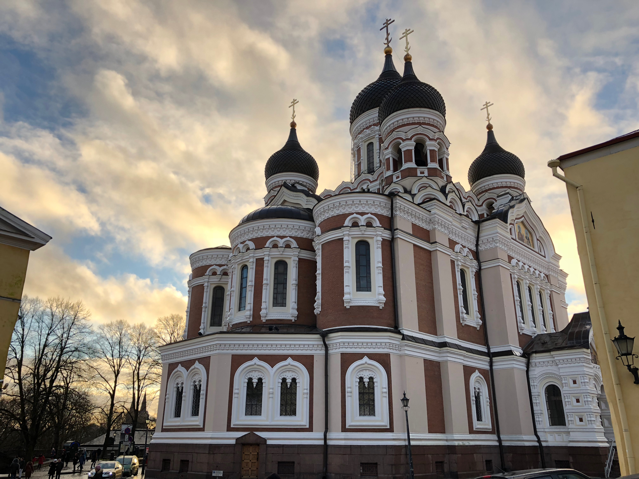 亞歷山大·涅夫斯基主教座堂Alexander Nevsky Cathedral是東正教教堂,頭頂前前後後有5個黑色洋蔥頭,外牆是深深淺淺的橙啡色,眾多白色圓頂窗框鑲嵌其上。這樣明顯的俄羅斯風格,與北方大灰熊當然脫不了關係。1900年,愛沙尼亞是沙皇俄國的一部份,亞歷山大·涅夫斯基主教座堂便是在當時建成的。