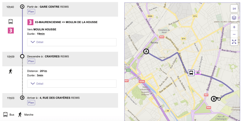 - 從蘭斯火車站Gare de Reims乘搭巴士約17分鐘,最近的巴士站為Droits de l’homme(C號線)和Cimeiere(6號線)