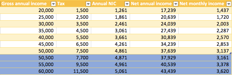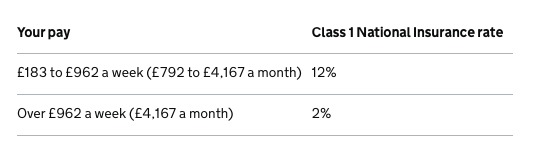 計法與入息稅相似。其實年薪£50,000就等於月薪£4,167,所以NIC也是同一個分水嶺。
