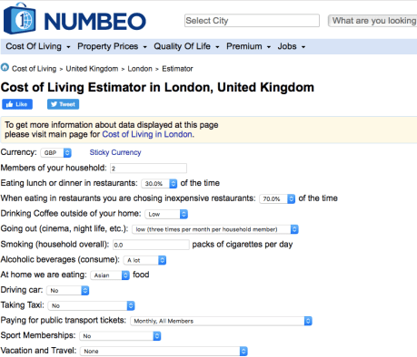 每月開支可以用這個去稍微預算一下到埗後每月開支:Numbero倫敦生活指數