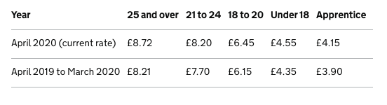 英國設有最低工資標準,25歲以下的為全國最低工資(National Minimum Wage),25歲及以上的為全國生活工資(National Living Wage)。每年4月更新一次。