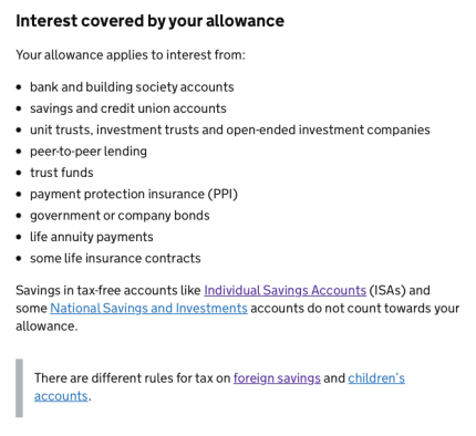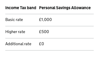對應利息的:starting rate for savings 和 Personal Savings Allowance